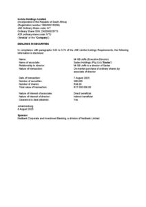 08 August 2025 15h30 Dealings in Securities